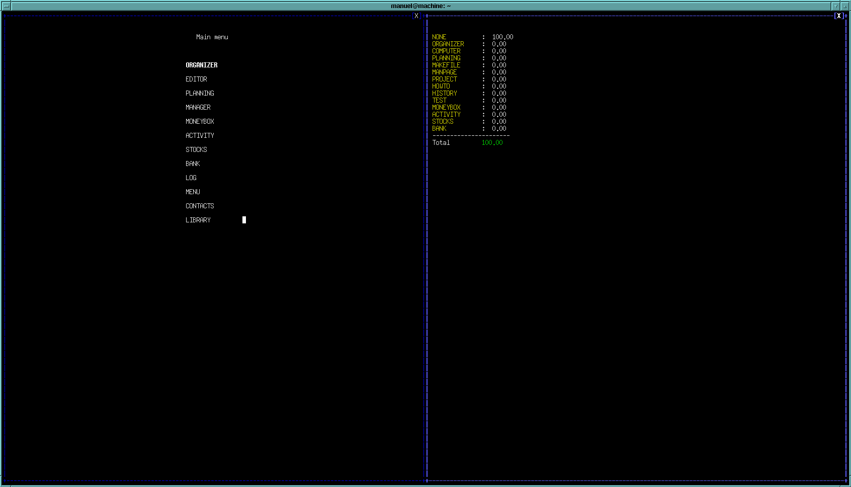 | Organizer | Etherogeneous N ary tree | F1 | make, remove, list, tree, switch, parent, root, search |